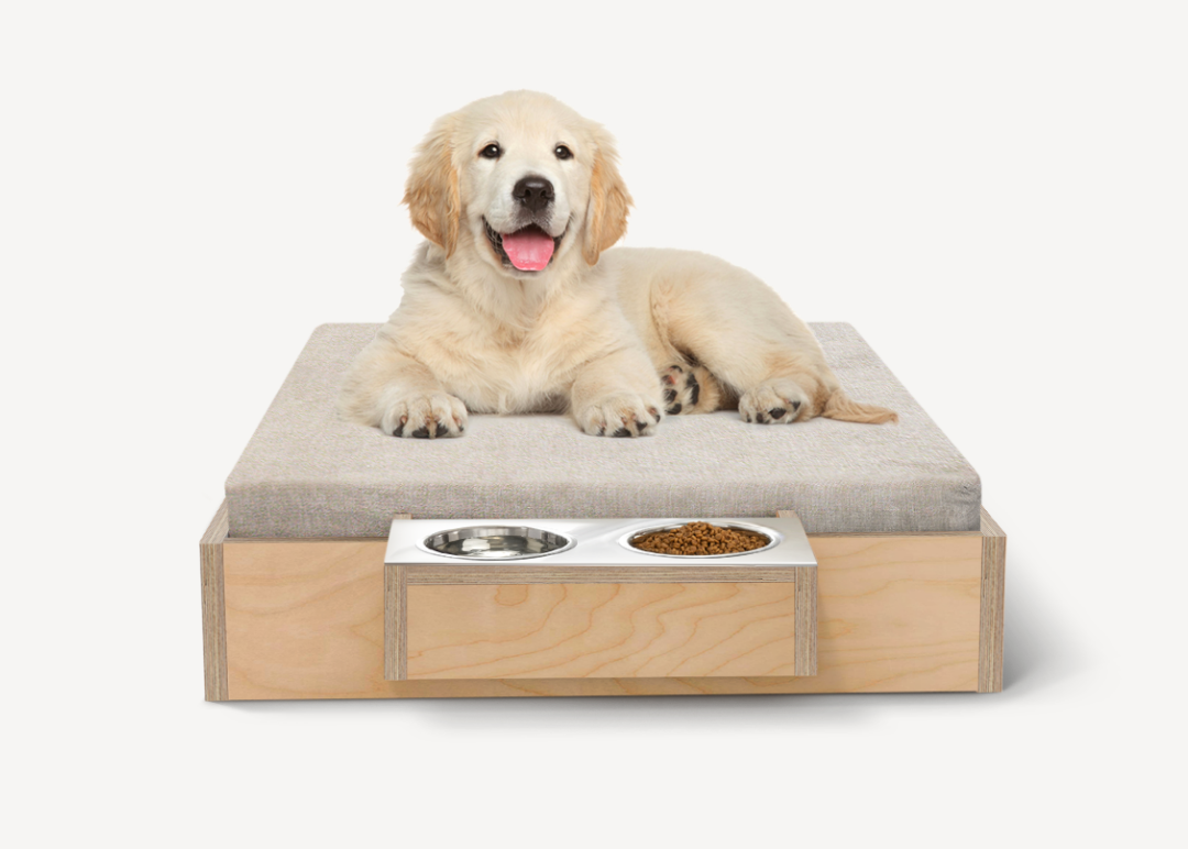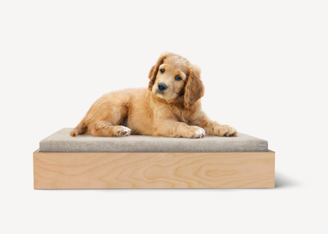 The Pupbed is currently available in a Natural finish. Each is coated in a non-toxic, water-based UV finish that’s safe for pups and designed to complement your home decor.