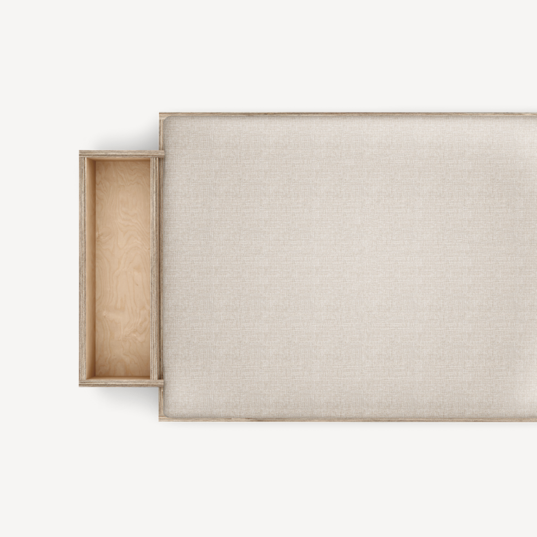 The Trunk is a storage drawer that integrates seamlessly with The Pupbed. Use it to store toys, leashes, waste bags, grooming tools — whatever your pup loves most. It helps keep your space tidy without sacrificing easy access.